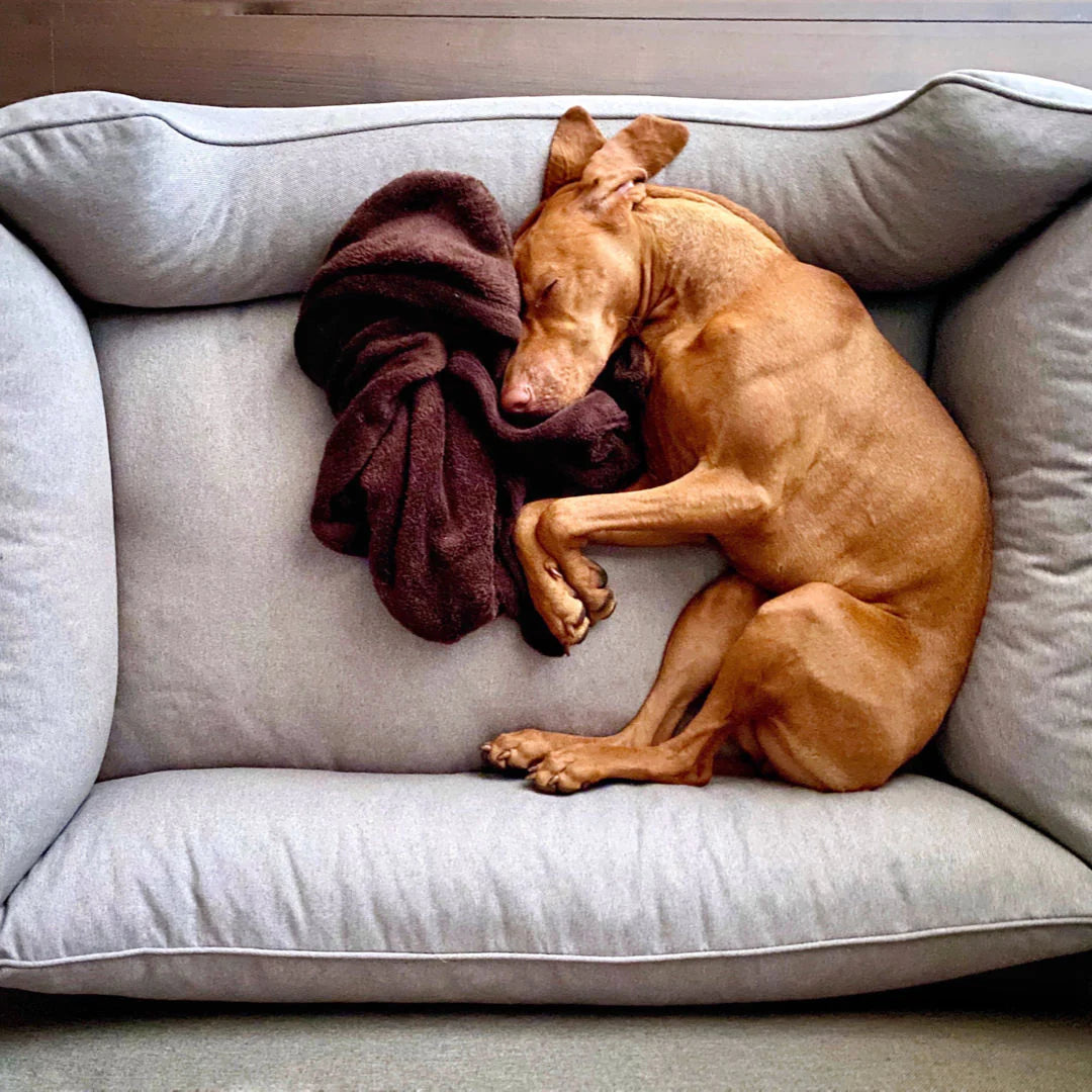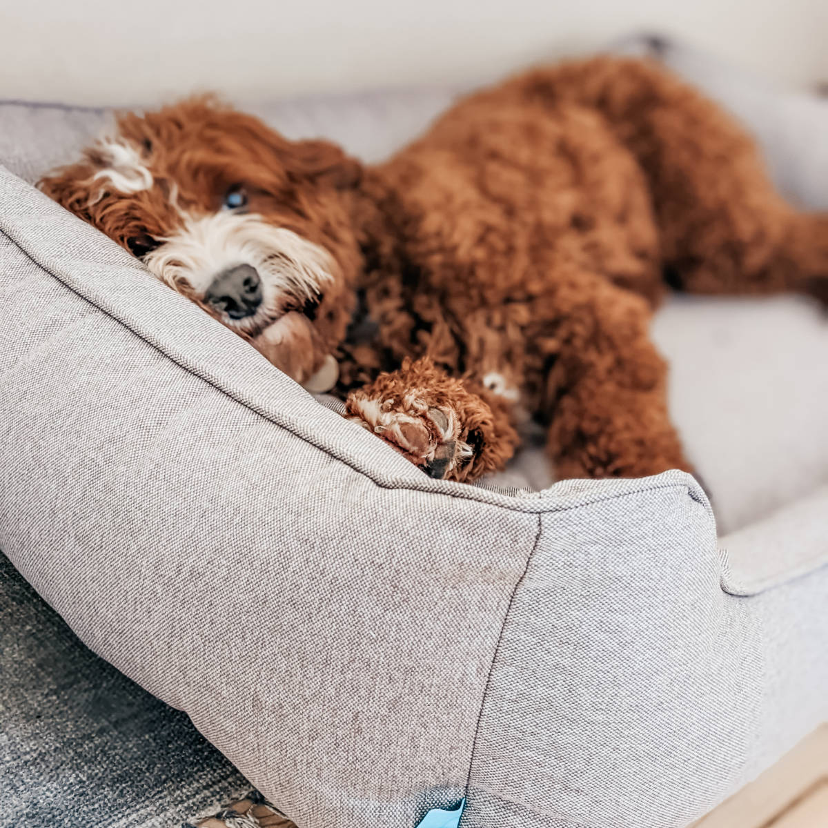 Und wenn es das so nicht gibt, ja, dann machen wir es halt selbst. Mit schönen, abziehbaren Stoffen, gemütlich breiten Seitenrändern für den neugierigen Kopf oder einem orthopädisch gefüllten Kissen für den müde gespielten Rücken.